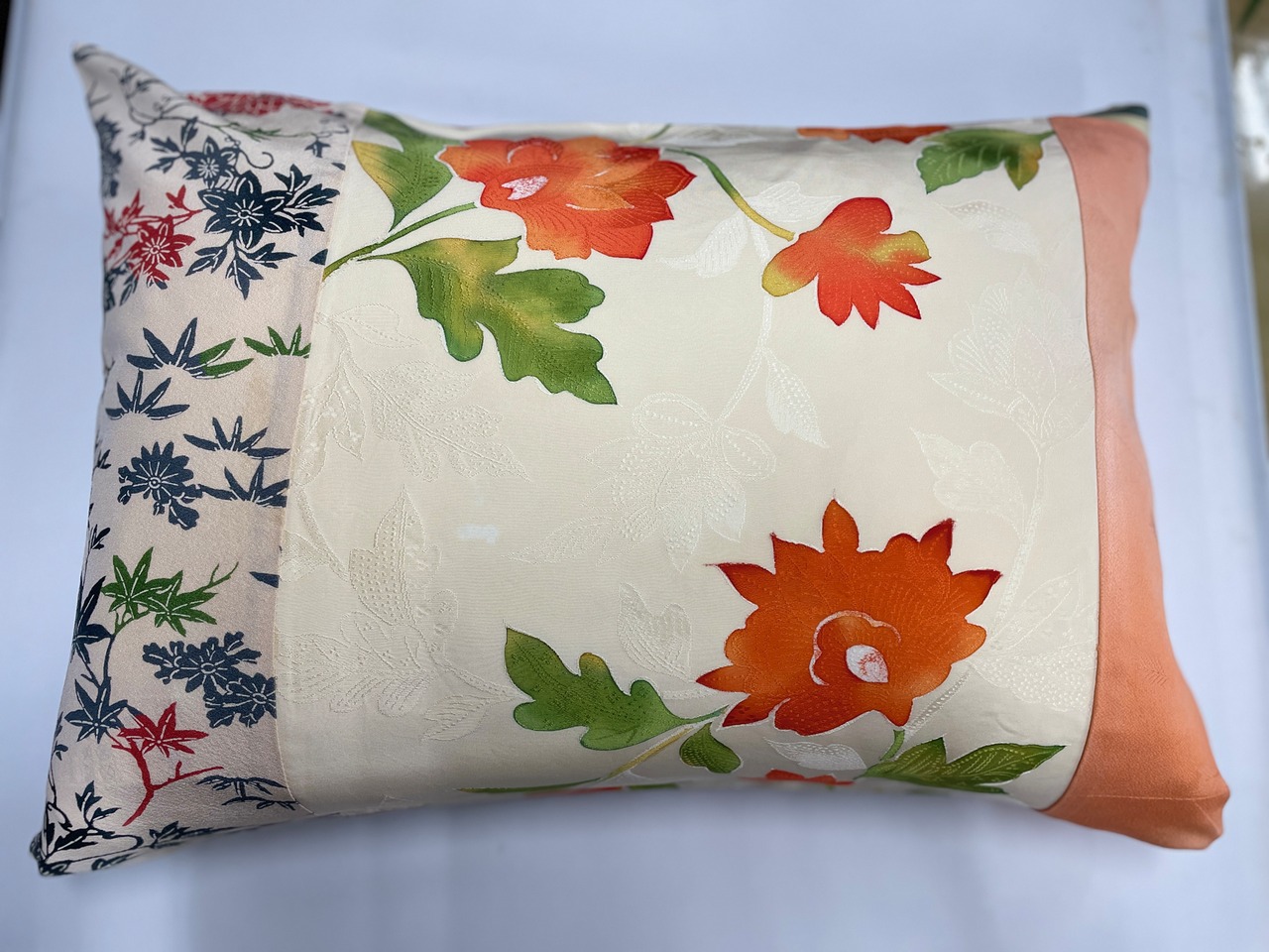 国産の着物をリメイクし、シルク100%で仕立てた枕カバーです。髪の摩擦やお肌の乾燥をやさしく防ぎ、翌朝の美しさを守ります。一点ものの柄からお好きなデザインを選べる、特別な眠りのパートナー。