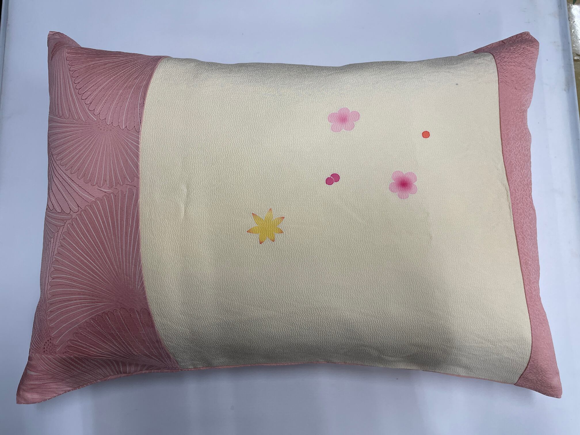国産の着物をリメイクし、シルク100%で仕立てた枕カバーです。髪の摩擦やお肌の乾燥をやさしく防ぎ、翌朝の美しさを守ります。一点ものの柄からお好きなデザインを選べる、特別な眠りのパートナー。