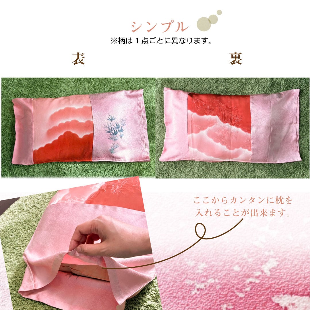 国産の着物をリメイクし、シルク100%で仕立てた枕カバーです。髪の摩擦やお肌の乾燥をやさしく防ぎ、翌朝の美しさを守ります。一点ものの柄からお好きなデザインを選べる、特別な眠りのパートナー。